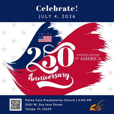 This July 4th, grab your red, white, and blue and join us for a musical fireworks show, indoors, fully air-conditioned, and with zero actual fireworks (According to the Fire Marshal, we can't light those things indoors!). From the soaring strains of The Star-Spangled Banner and America the Beautiful to the sparkling world premiere of America la Hermosa, our full wind ensemble will take you on a patriotic journey packed with heart, humor, and just the right amount of swagger. Celebrate 250 years of American spirit and the centennial of Palma Ceia Presbyterian Church. Hum along, clap along, and revel in everything that makes America bold, brave, and beautiful!